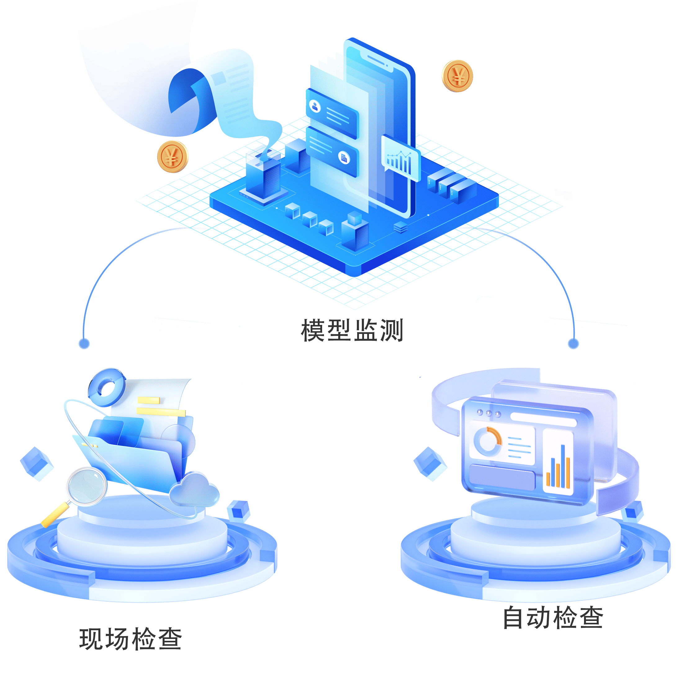 按照规则定期对用户数据进行自动化监测,触发风险预警值时,自动生成检查任务下发至客户经理与现场检查形成联动。